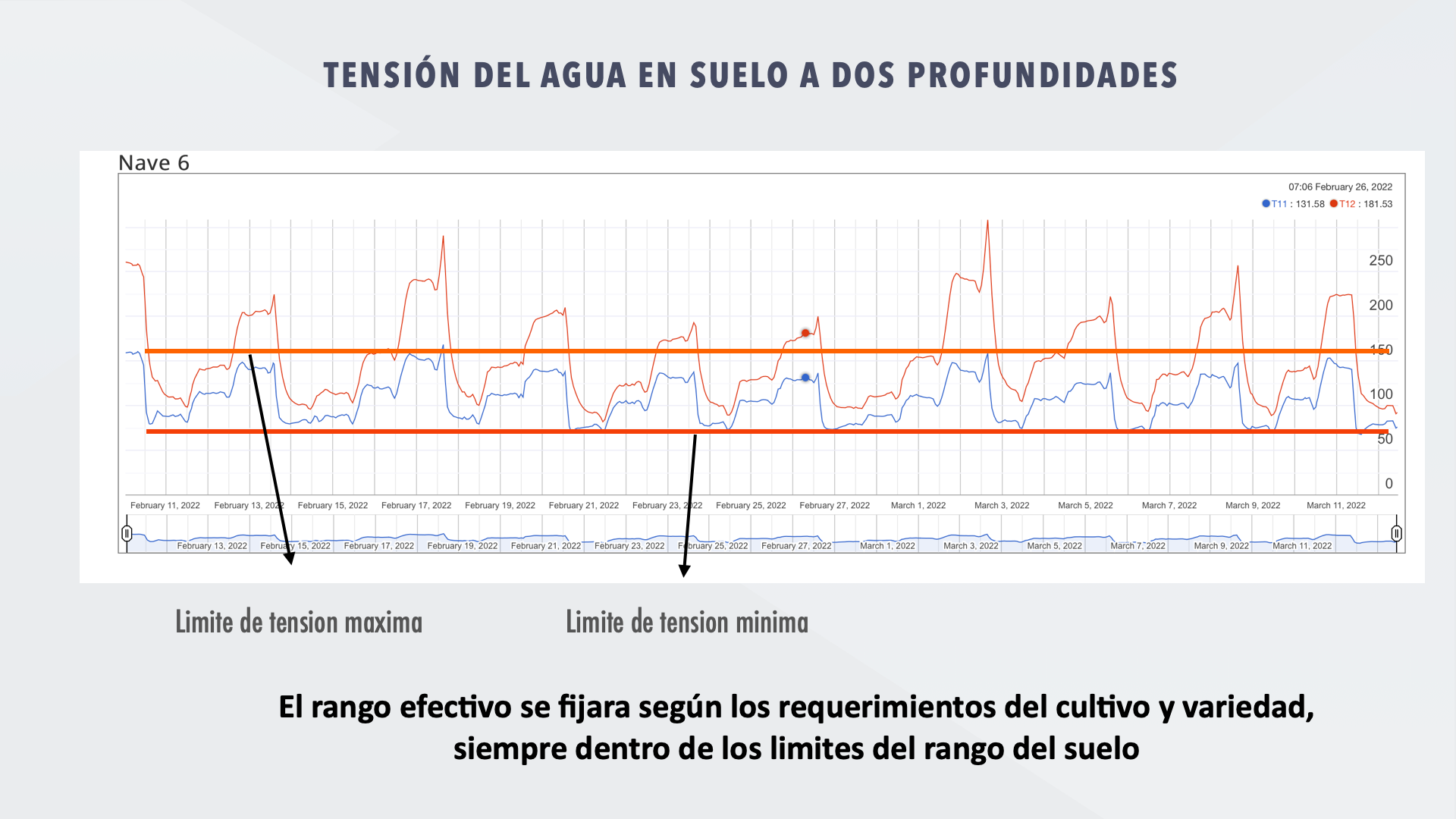 La información que nos proporcionan los tensiómetros, la visualizamos en la siguiente gráfica:
