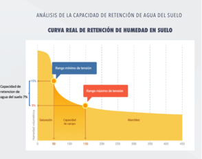 Para proceder con este modelo de decisión, es necesario conocer la curva de retención de humedad del suelo controlado y su capacidad de retención, que lo vemos en la siguiente gráfica: